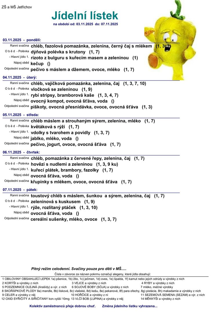 Na čtvrtek 30.10. a pátek 31.10. vyhlašuji ředitelské volno z důvodu dalšího vzdělávání pedagogických pracovníků. ŠD bude pro nezbytně nutné případy v provozu od 8 do 15.30 včetně oběda. Prosím včas se přihlaste ke stravování a vychovatelkám ŠD. Ostatní budou mít stravu automaticky odhlášenou.